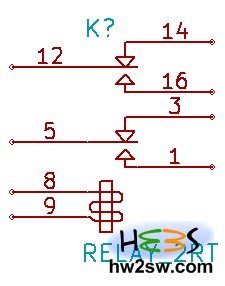 Look at two texts: below the name and above the reference designator: this relay represents an inductor (from pins 8 and 9) that regulates the couple switching lines, from 5 and 12 respectively to 1-3 and 16-14.