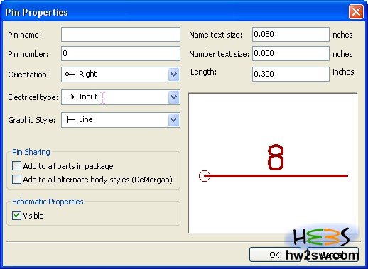 Press OK and put it where you want; or the pin-8 eight steps down from rectangle's top and eight left, while pin-9 twelve from bottom and eight left.