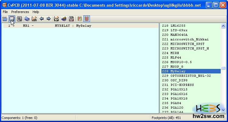 You'll find two columns: on left your schematic's symbol, on right an amount of voices for available footprints (pads collection); MyRelay (the one created on PCB) misses, so we must load it.