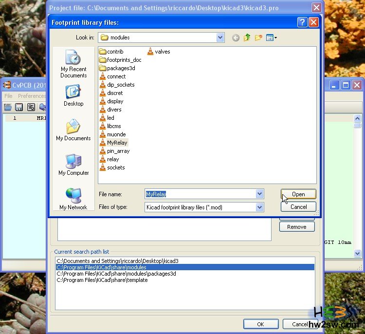 When you'll insert a MyRelay on EEschema, PCB will be able to load the module associated to it; just like for any other default component.